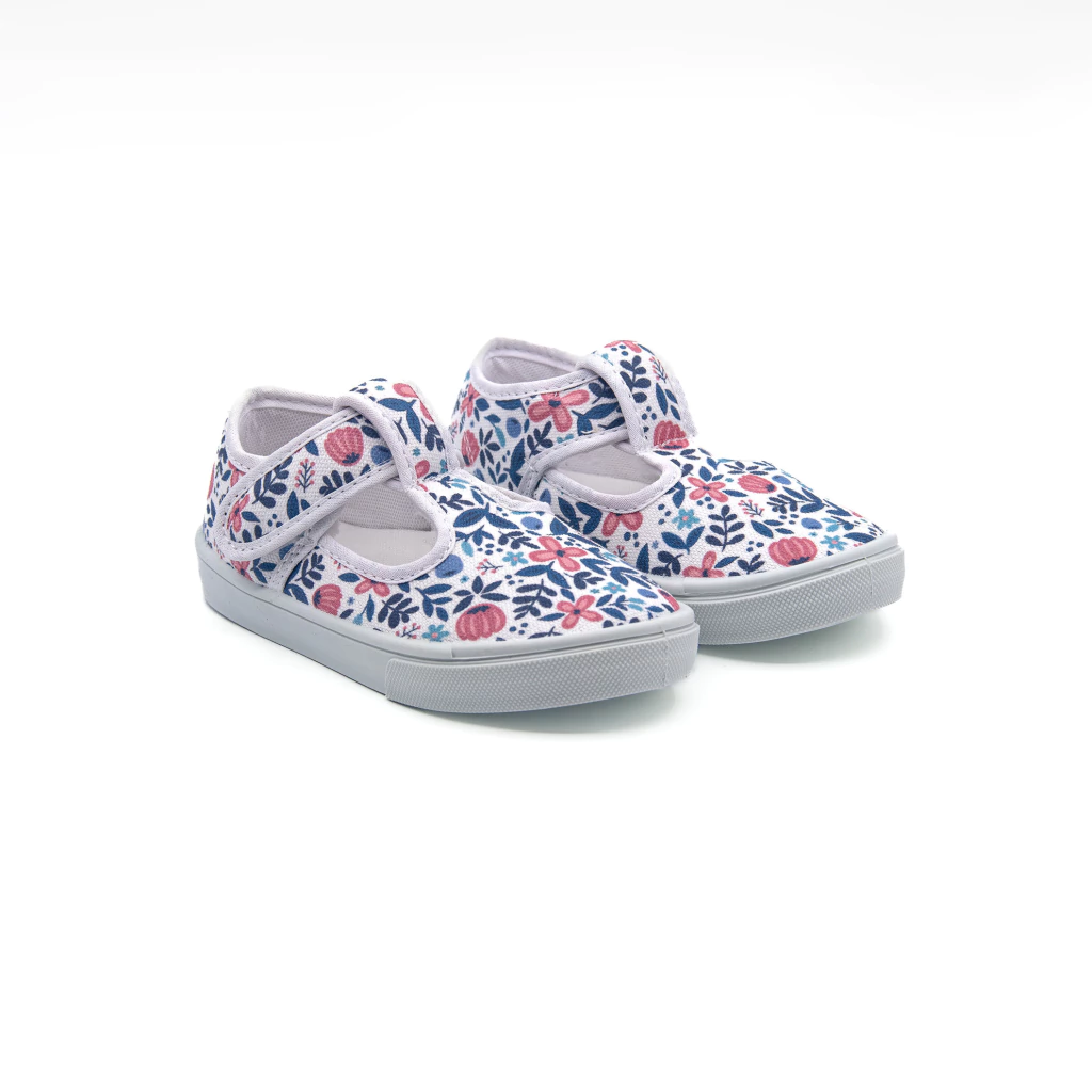 Guillermina de capellada textil y pulsera con velcro. Suela sintética.